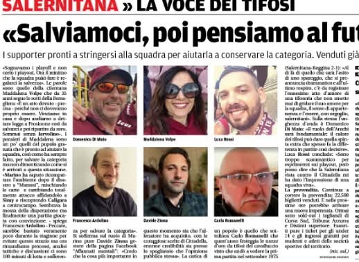 Spareggio per la permanenza in serie B, tra Salernitana-Frosinone, dopo il piccolo Nicolò grande tifoso granata, tutti ricordano i calciatori della Salernitana che invitarono il bambino ad un loro allenamento e gli regalarono un pallone autografato. Ora è la volta della mamma di Nicolò, Maddalena Volpe a lanciare il grido “Salviamoci” rivolto all’ambiente granata in vista delle due gare spareggio contro il Frosinone, e la nostra Maddalena lo fa anche a mezzo stampa (vedi foto)…