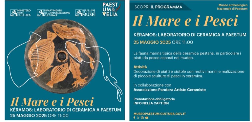 Per maggiori informazioni : https://museopaestum.cultura.gov.it/25-maggio-2025-al-museo-di-paestum-keramos-appuntamento-con-i-laboratori-di-ceramica/