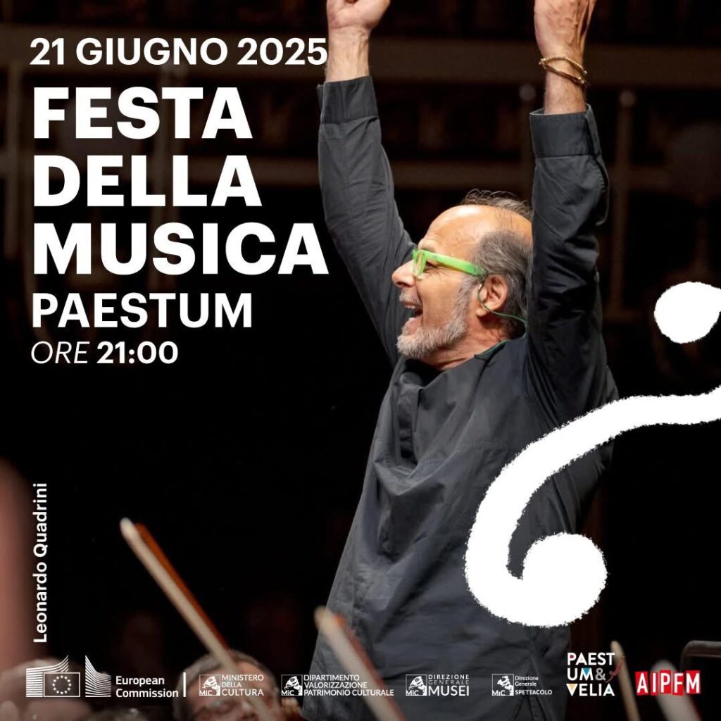 Il 21 giugno 2025, in occasione della Festa della Musica, le colonne millenarie del Tempio di Nettuno a Paestum diventano lo scenario di un’emozionante serata in musica.