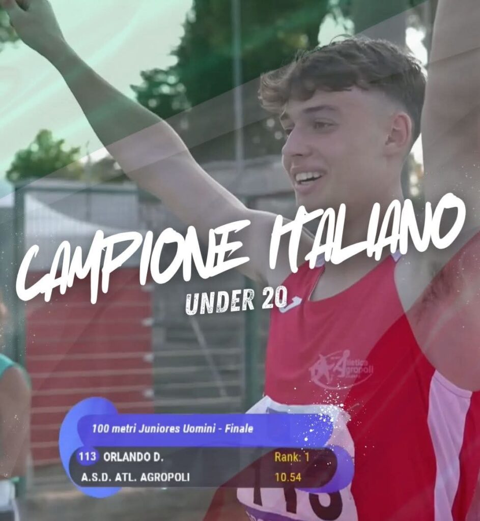 Complimenti a Daniele Orlando, campione Italiano sui 100 metri categoria juniores. In forza all’Atletica Agropoli, è l’under 20 più veloce d’Italia con un tempo di 10.54 fatto registrare ai Campionati italiani in svolgimento a Grosseto…Chapeau…