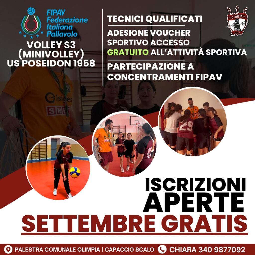 Se stai cercando un’attività sportiva coinvolgente, educativa e divertente per i tuoi bambini, il Volley S3 (minivolley) dell’US Poseidon 1958 è la scelta ideale! Aperta a bambini dai 6 ai 12 anni!