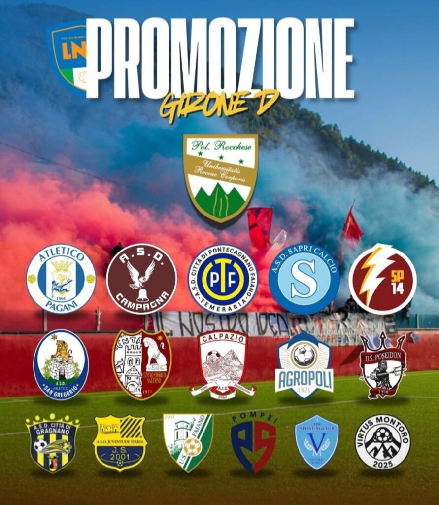Girone D Promozione del campionato di calcio dilettanti in Campania a 17 squadre con l’inserimento dell’Agropoli non iscritta al campionato di Eccellenza, sarà un torneo pieno di derby, con Poseidon, Calpazio, e Agropoli, ecco il girone D completo: Virtus Montoro, Città di Gragnano, Juventude Stabia, Victoria Marra, Atletico Pagani, Atletico San Gregorio, Calpazio, Centro Storico Salerno, Città di Campagna, Città di Pontecagnano-Temeraria, Rocchese, Sapri, Sporting Pontecagnano, U.S Faiano, Poseidon, Virtus Pompei Soccer, U.S. Agropoli.