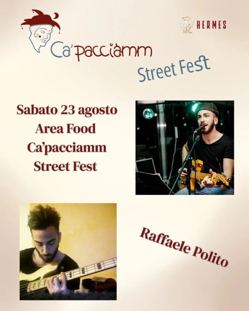 Sabato 23 agosto, dalle ore 22:30, nell’area food del Ca’pacciàmm Street Fest ci sarà la musica dal vivo di @raffaele_polito_artista.