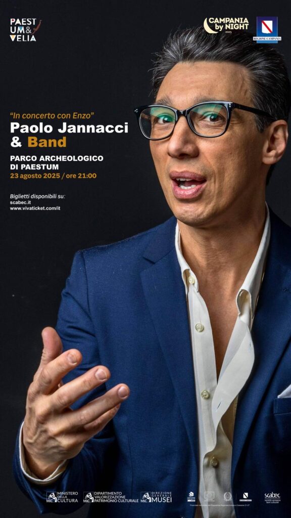 PAOLO JANNACCI & Band al Parco Archeologico di Paestum sabato 23 agosto: “in concerto con Enzo” è un omaggio intimo e autentico alla musica del padre Enzo, tra jazz e poesia.