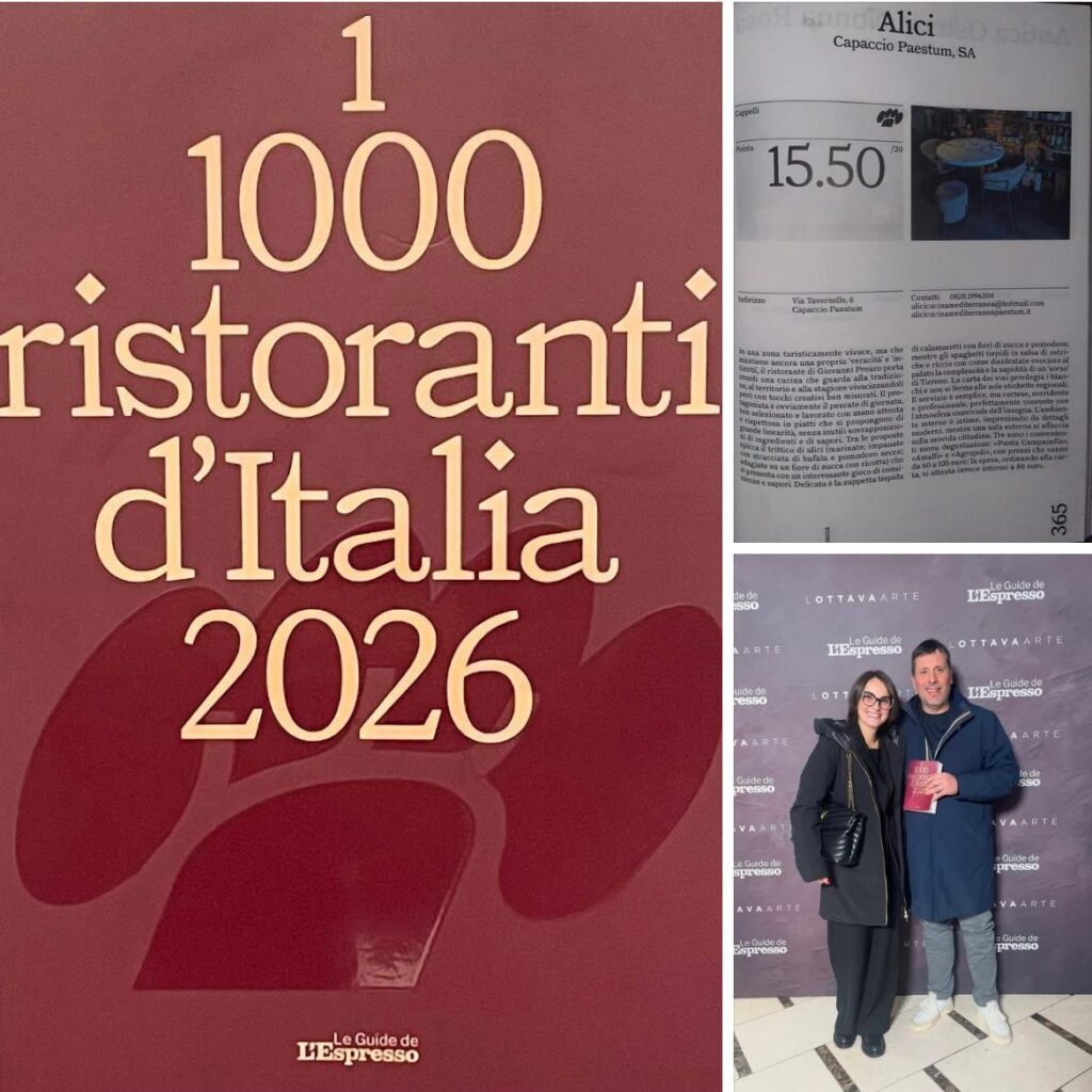 CAPACCIO PAESTUM. Al Teatro degli Arcimboldi di Milano, davanti a oltre 1000 ospiti tra chef, produttori di vino, operatori del settore ed istituzioni, si è svolta la presentazione della 46^ edizione delle Guide ‘I 1000 Ristoranti d’Italia’ e ‘I 1000 Vini d’Italia’ de L’Espresso per celebrate l’Ottava Arte, quella della cucina. Il Ristorante “Alici” Cucina Mediterranea del nostro Giovanni Prearo, sito in via Tavernelle a Capaccio Paestum in provincia di Salerno, con grande orgoglio e soddisfazione e’ stato riconosciuto e segnalato nella prestigiosa guida de L’Espresso 2024 2025…Chapeau…