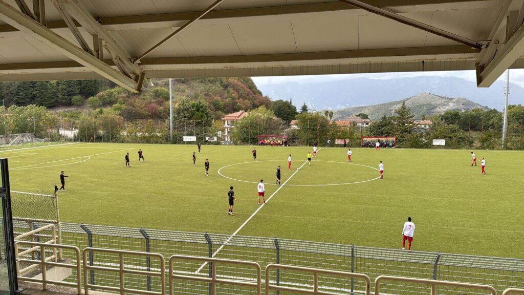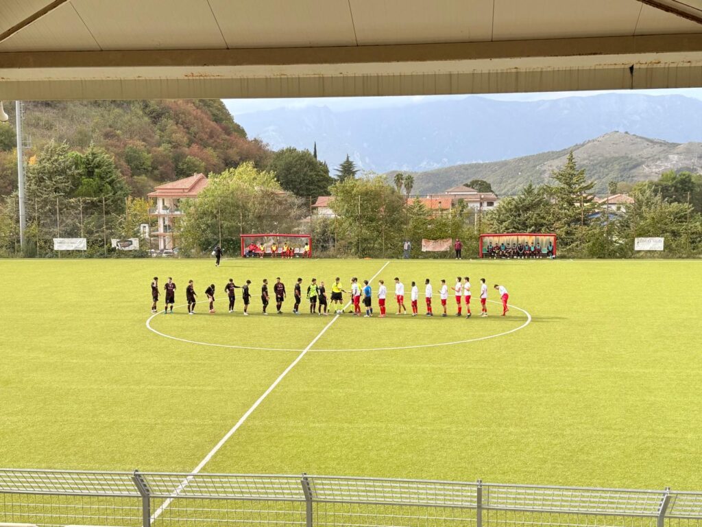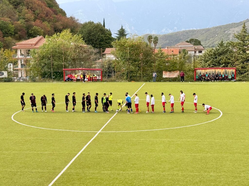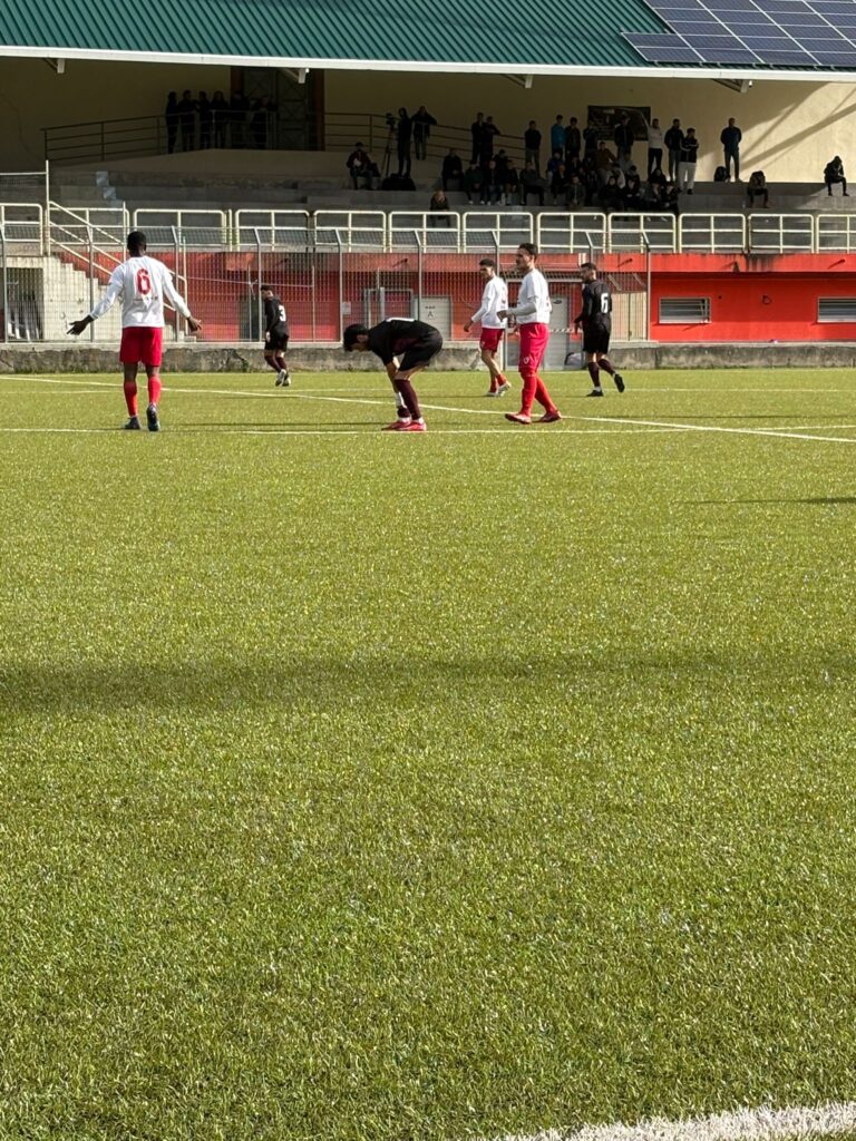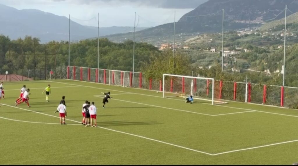 Campionato di Promozione girone D, 7° giornata, la Poseidon con una gara in meno avendo già riposato in questo girone di andata, è andata a vincere sul campo del Palomonte, 0-3 in rete per i pestani, Bellizio,D’Attilio su rigore, e Tavarone, gara senza storia e sempre sotto controllo per i ragazzi di mister Voza, in foto il calcio di rigore di D’Attilio.