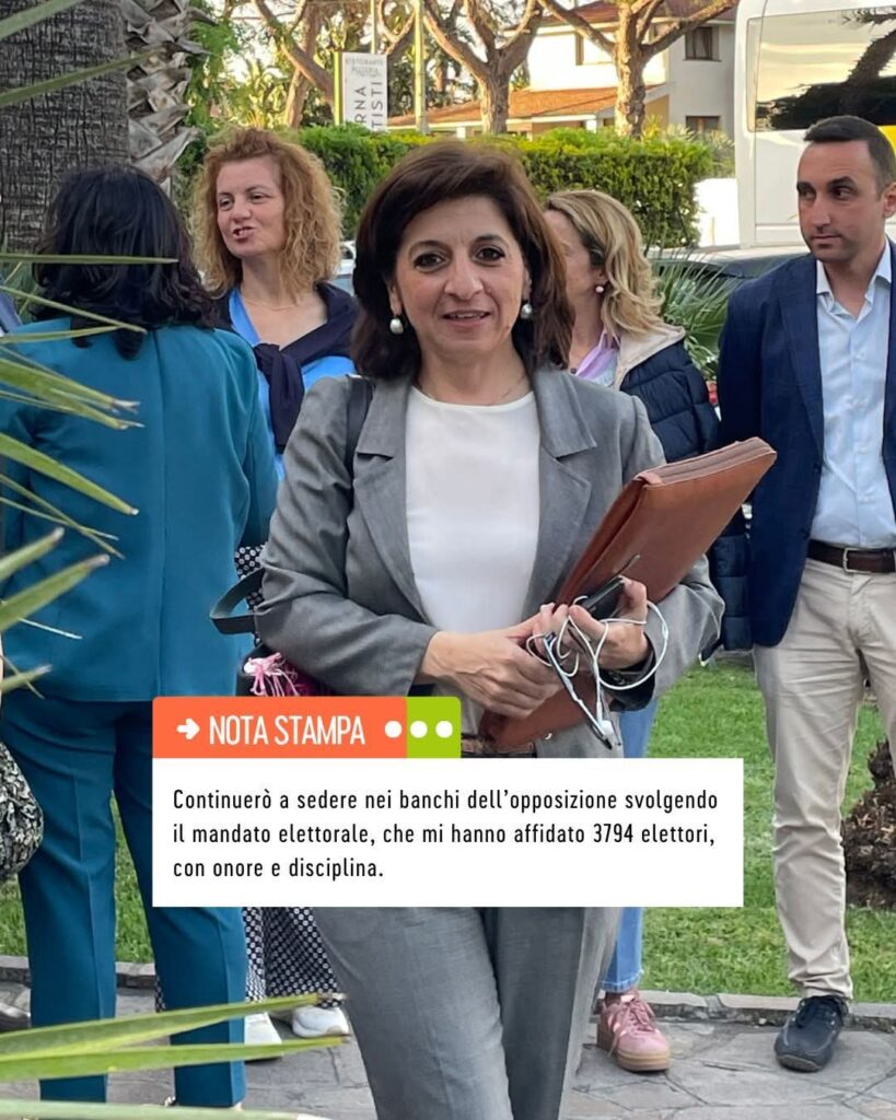 Per quanto mi riguarda continuerò a sedere nei banchi dell’opposizione consapevole del dovere istituzionale di controllare, avanzare proposte e vigilare sull’operato amministrativo, svolgendo il mandato elettorale che mi hanno affidato 3794 elettori di rappresentarli, come richiesto dall’art. 54 della Carta Costituzionale, “con onore e disciplina”.