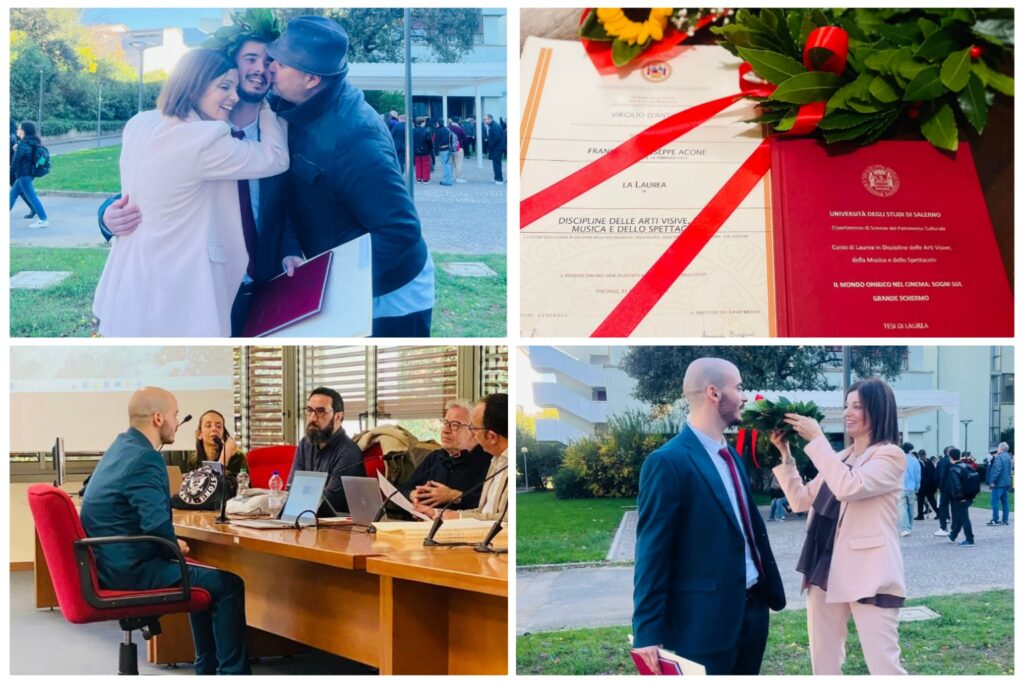 Il primogenito Francesco Giuseppe Acone ha conseguito brillantemente la laurea in Discipline delle Arti Visive, della Musica e dello Spettacolo, presso l’Università degli Studi di Salerno, discutendo una tesi dal titolo “Il mondo onirico nel cinema: sogni sul grande schermo”. Grande soddisfazione per papà Giuseppe, artista e per mamma Rossella, responsabile Ufficio Stampa dei Parchi archeologici di Paestum e Velia. A Francesco Giuseppe auguriamo che questo sia solo l’inizio di un percorso pieno di creatività, soddisfazioni e nuove scoperte.