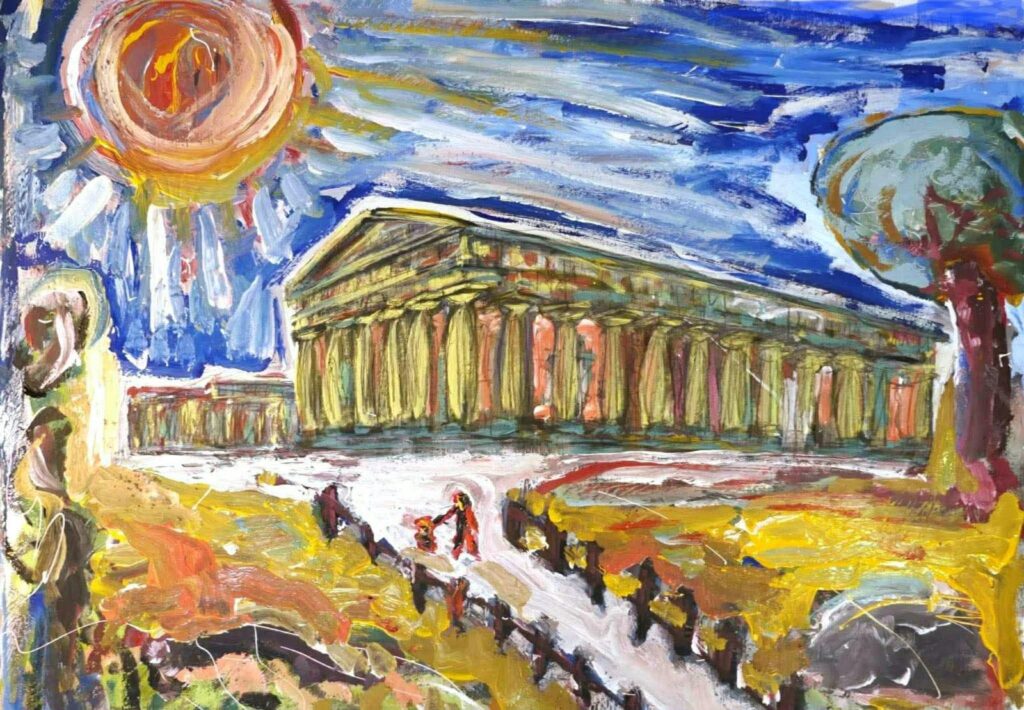 Il quadro, realizzato dal maestro Giuseppe Acone, rappresenta il Tempio di Nettuno nel Parco Archeologico di Paestum.