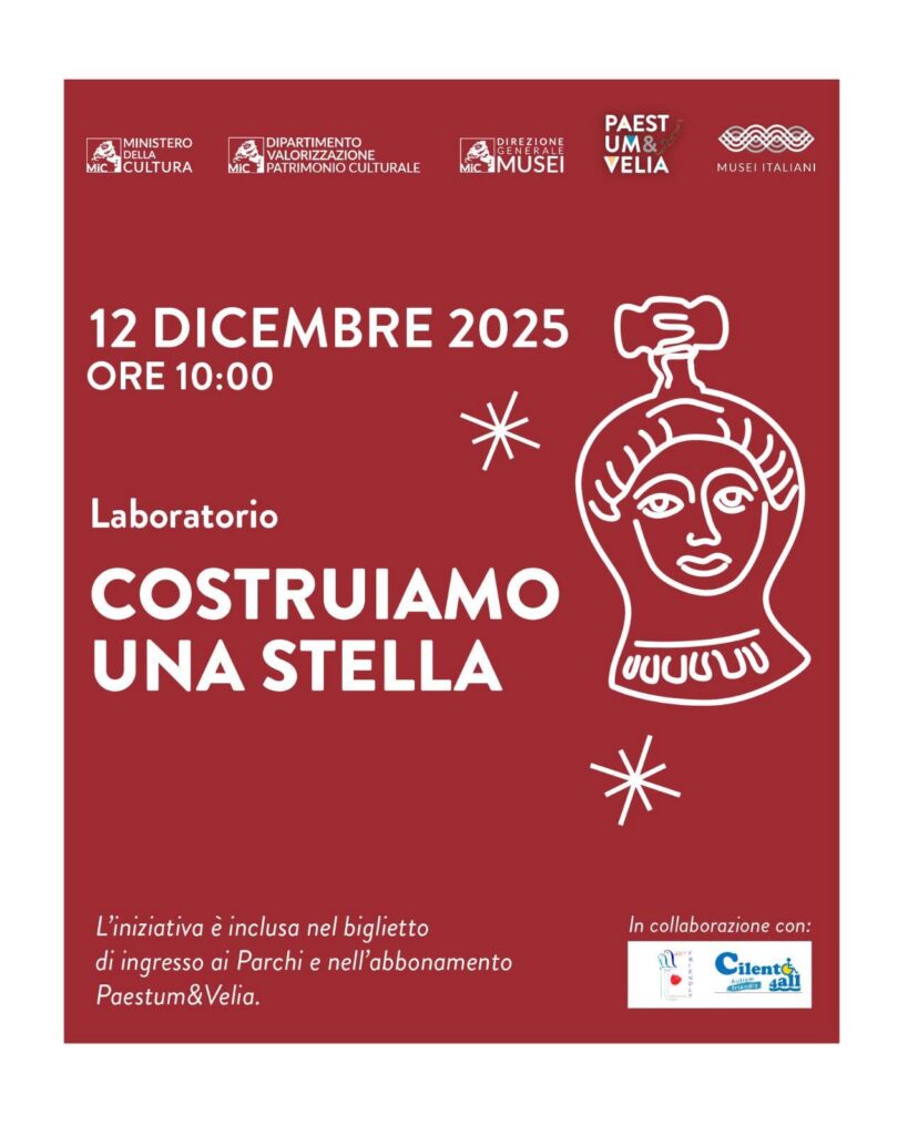 Il 12 dicembre, alle ore 10:00 nel Museo di Paestum, vivi un’esperienza inclusiva che unisce manualità, creatività e scoperta del patrimonio archeologico con il laboratorio “Costruiamo una Stella”!