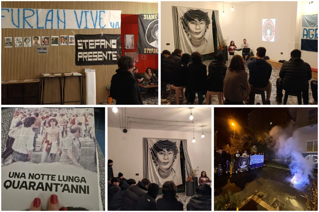 Lunedì sera ad Agropoli è stato presentato il libro ” Una storia lunga 40 anni ” scritto dall’ Associazione Stefano presente “, voluto fortemente dagli ultras della Triestina per narrare la dolorosa storia di Stefano Furlan, morto dopo la partita Triestina-Udinese, avvenuta nel 1984, per mano di poliziotti che all’epoca, nonostante non ci furono tafferugli, colpi’ a morte il povero Stefano che camminava all’uscita dello stadio per andare alla sua auto. Serata organizzata dagli Ultras Agropoli, che nonostante la caduta dell’Agropoli nei bassifondi del calcio, continuano a seguire ed incitare i delfini. Presenti vari gruppi ultras della zona, Paestum Ultras sponda Salernitana, club Napoli MArgiotta, ultras Manduria ed altri. Ha moderato Maddalena Volpe facendo una toccante premessa su Furlan.