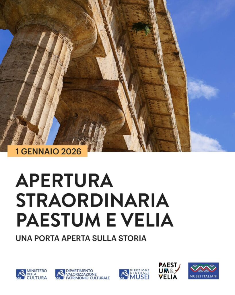 Inizia il nuovo anno immergendoti nella storia: il 1° gennaio i Parchi archeologici di Paestum e Velia aprono le loro porte per una giornata straordinaria all’insegna della cultura e della bellezza, grazie al Piano di Valorizzazione del Ministero della Cultura.