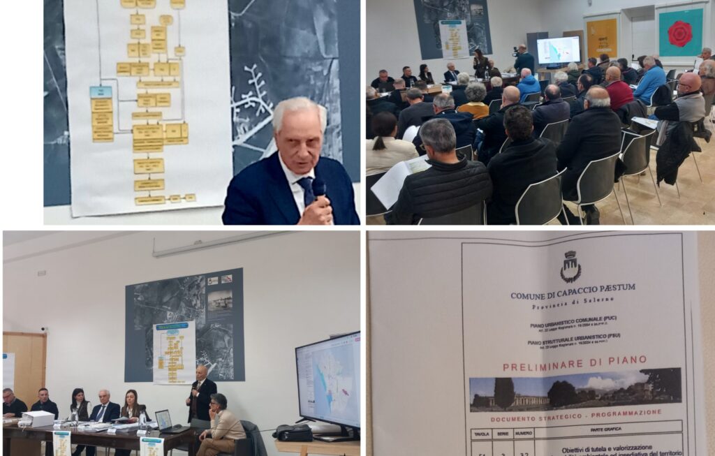 Stasera alla Sala Erica in Capaccio Scalo riunione per presentare il Preliminare di Piano Urbanistico Comunale PUC, presente ovviamente il Sindaco di Capaccio Paestum, Avvocato Gaetano Paolino con i tecnici che hanno redatto il Piano, Sala gremita con una numerosa partecipazione di persone.