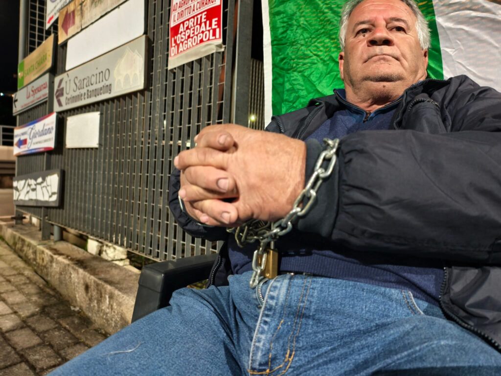Protesta questa sera all’ospedale di Agropoli. Il cittadino Antonio Corrado Mancino si è incatenato davanti ai cancelli della struttura.