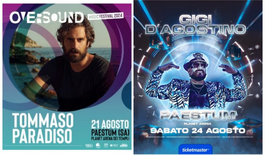 Chiusura del mese di agosto 2024 all’Arena di Paestum con altri due top personaggi, il 21 agosto inizio ore 21:30 Tommaso Paradiso cantautore italiano, ed il 24 agosto ore 21:30, sarà di scena Gigi D’Agostino, Disc jockey e produttore discografico…