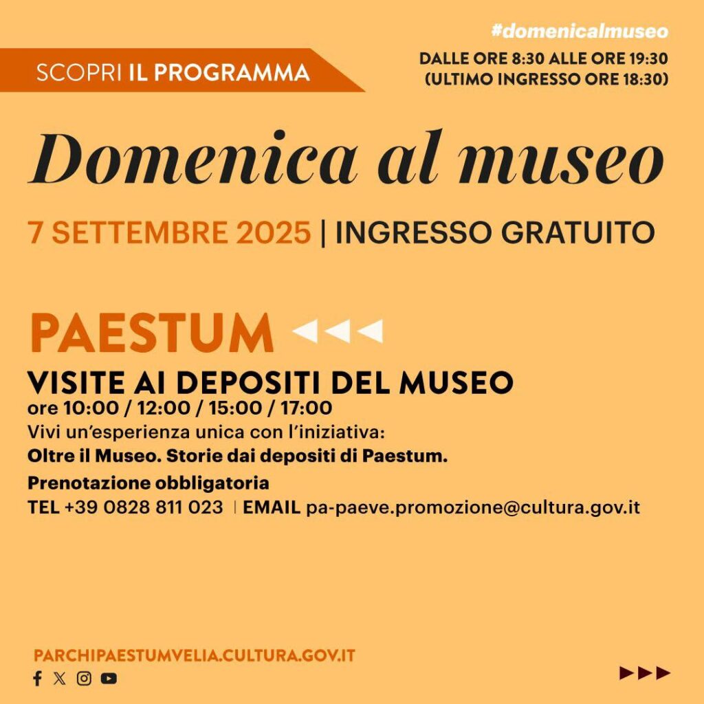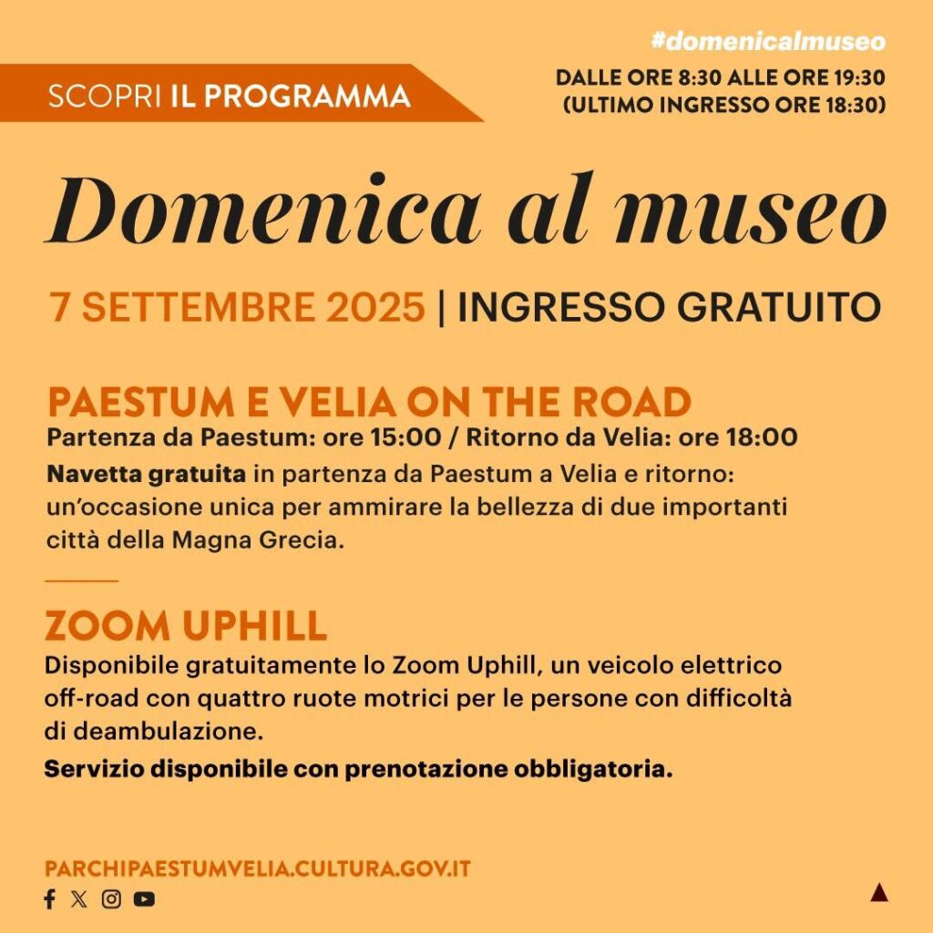 Scopri di più: https://parchipaestumvelia.cultura.gov.it/domenica-al-museo-il-7-settembre-ingresso-gratuito-ai-parchi-archeologici-di-paestum-e-velia/