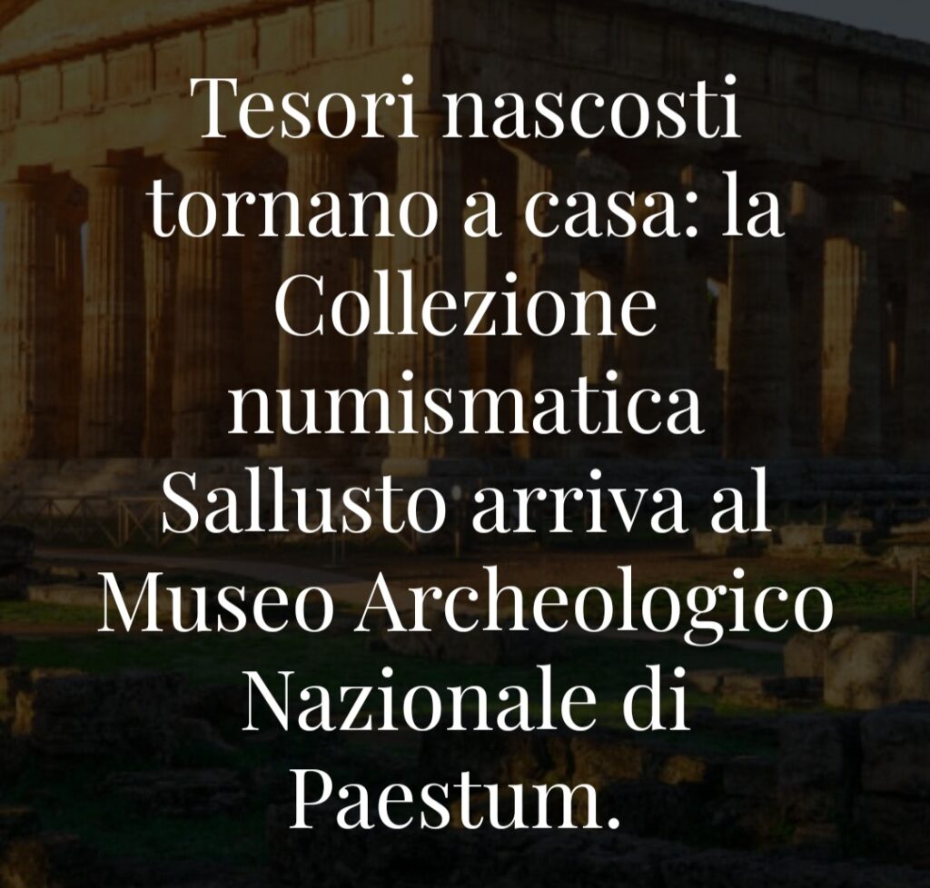 Scopri di più: https://parchipaestumvelia.cultura.gov.it/tesori-nascosti-tornano-a-casa-la-collezione-numismatica-sallusto-arriva-al-museo-archeologico-nazionale-di-paestum/